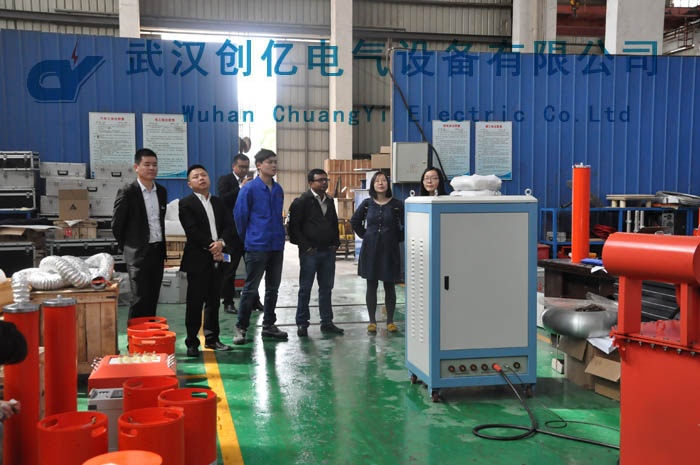 昨日,創(chuàng)億電氣迎來了印度客戶Vijay的來訪。該客戶在我司訂購了一套CYTF-4500KVA/750KV的變電站變頻串聯(lián)諧振試驗裝置,而此次來訪的主要目的是驗貨。此次客戶采購此套設備主要是用于400KV GIS設備的測試。