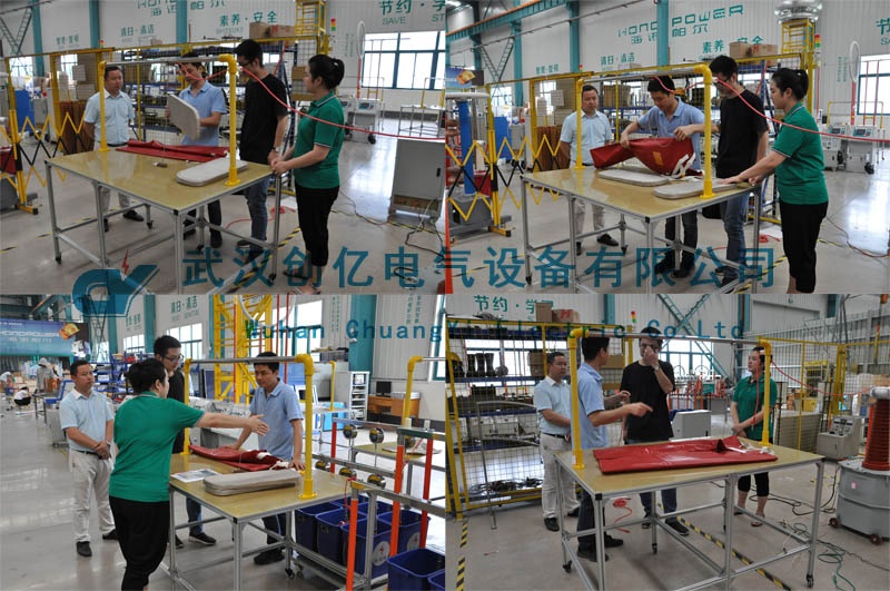 客戶抵達(dá)公司后,負(fù)責(zé)接待的同事了解客戶的考察需求隨后一同前往我司生產(chǎn)車間。在公司技術(shù)人員的介紹下重點研究學(xué)習(xí)了CYJS-6系列 絕緣手套(靴)耐壓試驗裝置的操作流程、接線方法以及注意事項等理論知識,并用這套耐壓試驗裝置配合CYD系列絕緣墊(毯)試驗電極裝置一起做了實踐演示,讓客戶更清楚掌握試驗設(shè)備的使用方法、工藝流程等相關(guān)知識。