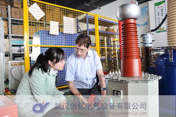 他們此行主要目的是考察串聯諧振和變壓器類系列產品,針對Lalit告知其被試品是發電機,需要對其做局放耐壓試驗。要滿足發電機單相對地時做耐壓試驗,又滿足三相一起做耐壓試驗。通過與客戶進行詳細深入的技術溝通后,最終給客戶選定1200kVA/60kV工頻串聯諧振試驗系統。Lalit也非常贊許!隨后他還詳細看了超低頻、回路、互感器等設備,并一一為其做了演示試驗。在考察的過程當中他們都聽得特別認真仔細,還生怕漏掉了哪個環節,時不時拿出相機來拍照,做錄。