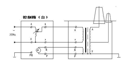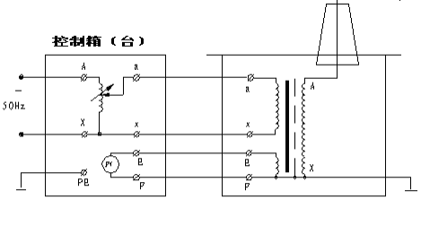 圖3:交流氣體式試驗變壓器接線 2. 交流帶抽頭氣體式試驗變壓器:見圖4