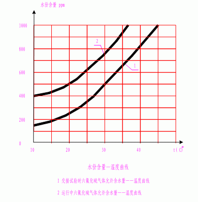 SF6氣體中水份含量-溫度曲線