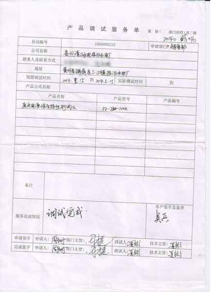2014-05-19 貴州省錦屏縣三江鎮掛治水電廠進行調試服務,調試產品:CYDZ-220-100A直流電源綜合特性測試儀