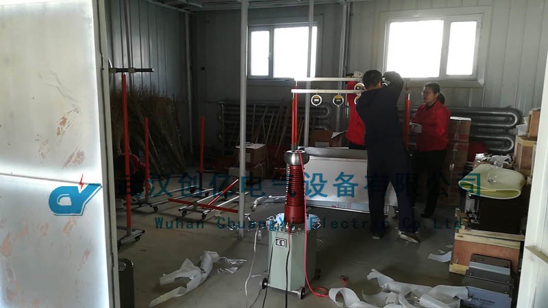 技術人員抵達現場后,先是與客戶處現場的負責人員一起對貨物進行了拆箱和清點。然后對安全工器具上的毫安表等器件進行了組裝。隨后以客戶處的被試品進行試驗,首先先向客戶演示了試驗設備之間的接線。然后著重演示了被試品的處理,需要有效地形成閉合回路。