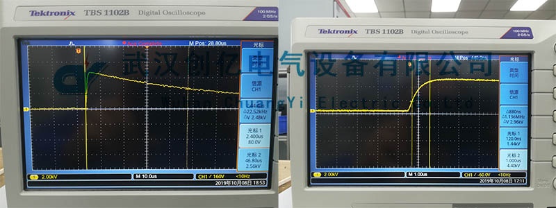 實際操作中指導客戶正確的完成儀器的試驗參數設定、試驗時間間隔調整等相關技術操作,而后對試驗的波形時間、半峰值時間等試驗數據進行分析比對,最后分析得出波形合格,符合標準要求。